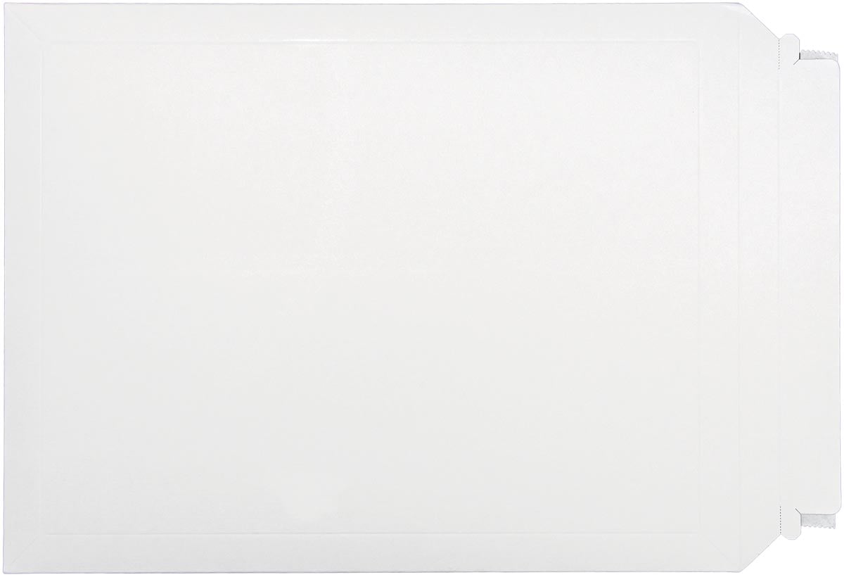Uit wit massief karton van 450 g/m. Elegant en beschermend. Stripsluiting en tearstrip aan de korte zijde. Biedt een goede bescherming aan onregelmatig vormgegeven voorwerpen zoals rapporten, documenten en certificaten. Voor het verzenden van poststukkenmet extra volume die onbeschadigd moeten aankomen. Doos van 100 stuks.