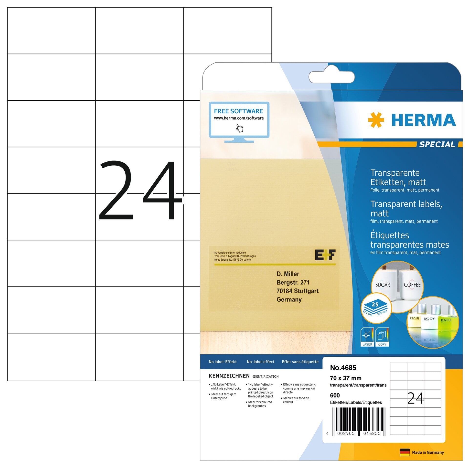 Etiket HERMA 4685 70x37mm transparant 600stuks