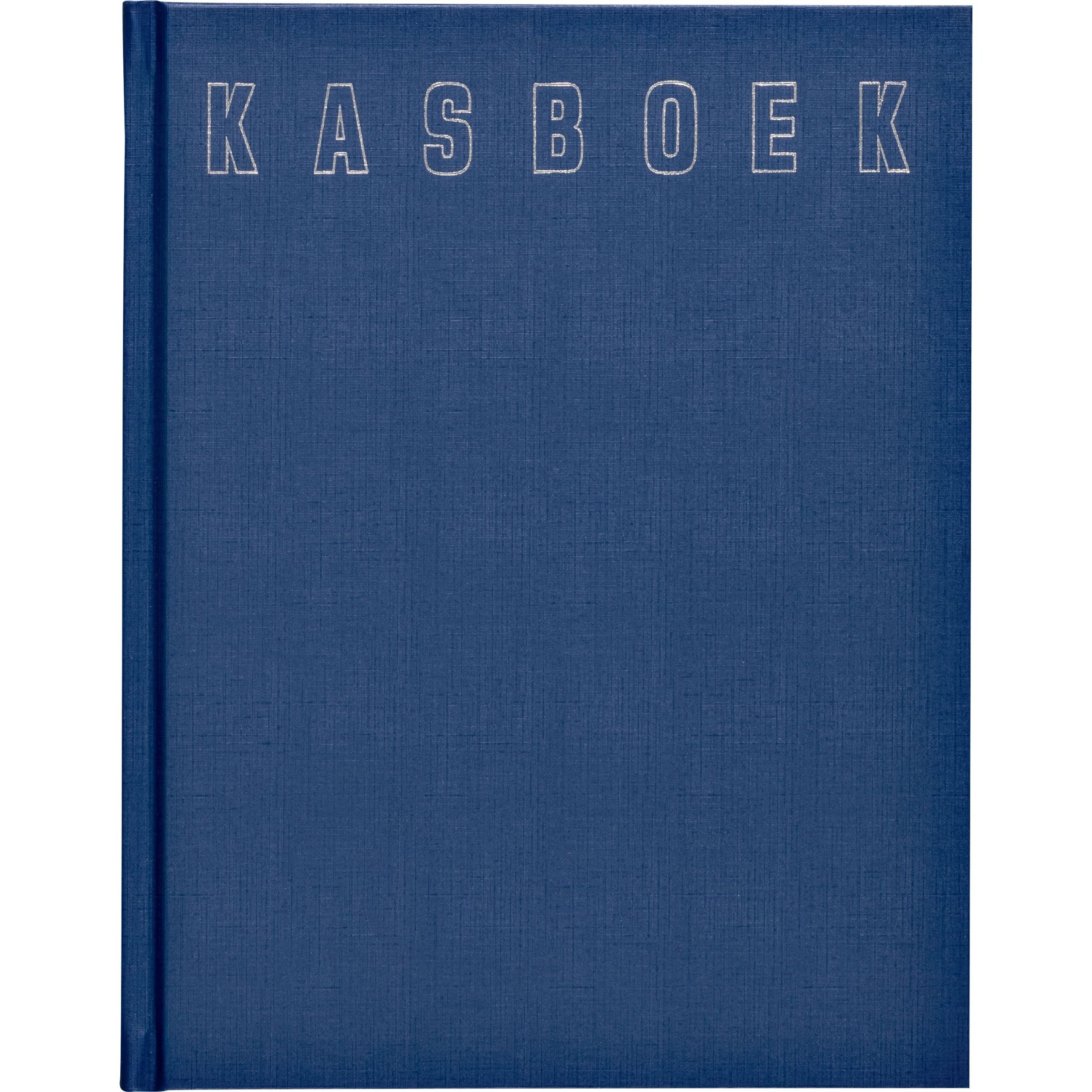 *Houtvrij rood blauw gelinieerd schrijfpapier.. Kaft met zilvere bedrukking ” KASBOEK “.
