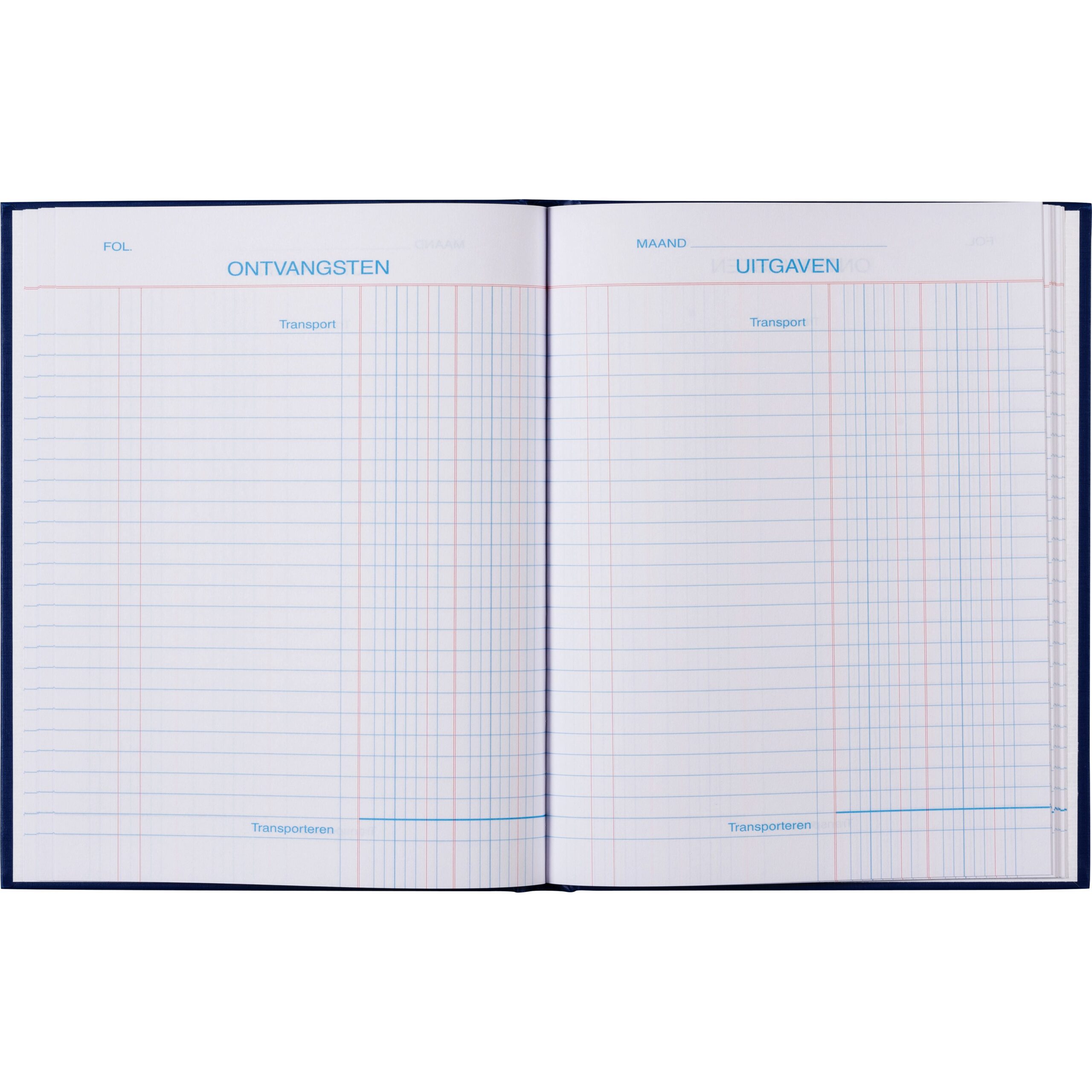 *Houtvrij rood blauw gelinieerd schrijfpapier.. Kaft met zilvere bedrukking ” KASBOEK “.