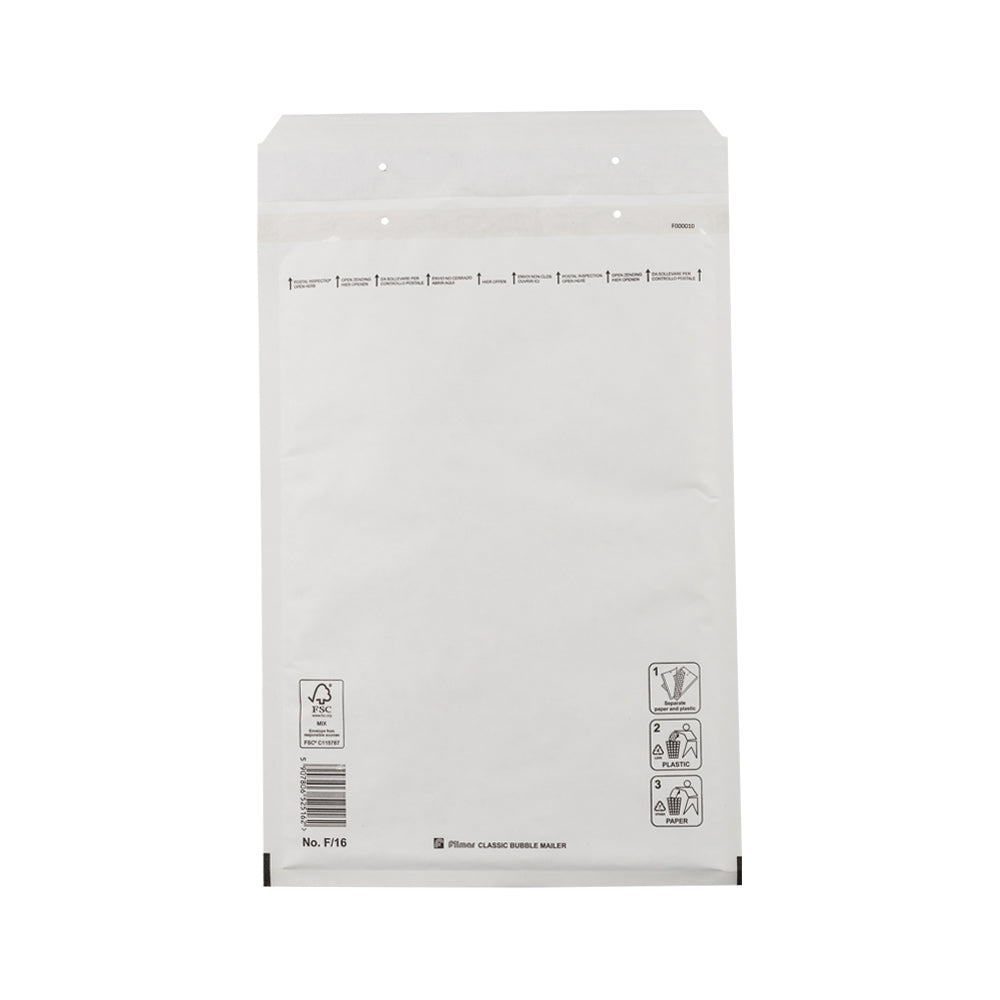 Verzend gemakkelijk en voordelig al je producten in deze stevige luchtkussen enveloppen van VIV! De buitenkant is gemaakt van sterk kraftpapier, terwijl de binnenzijde gevoerd is met noppenfolie. Deze combinatie zorgt voor een uitmuntende bescherming van al je producten. Deze witte F/16 luchtkussen enveloppen hebben een inwendige afmeting van 220 x 340 mm. Dankzij de zelfklevende sluiting heb je geen andere verpakkingsmaterialen nodig om de bubbel enveloppen te sluiten. Gemakkelijk en erg handig dus! Deze bubbel enveloppen F/16 zijn een milieuvriendelijke en duurzame keuze. Ze zijn namelijk FSC gecertificeerd (mix-credit), en dus deels vervaardigd uit gerecycled papier. De noppenfolie aan de binnenzijde is eveneens deels vervaardigd uit gerecycled kunststof. Dit betekent dat de totale envelop voor wel 70% vervaardigd is uit gerecyclede materialen. Uiteraard zijn de enveloppen zelf ook weer 100% recyclebaar. Hiertoe dient het papier van de noppenfolie gescheiden te worden, om vervolgens gedeponeerd te worden bij de juiste afvalstromen. F/16 Luchtkussen enveloppen: Zijn gemaakt van hoogwaardig wit kraftpapier en gevoerd met noppenfolie Bieden een uitstekende bescherming aan je producten Beschikken over een handige zelfklevende sluiting Zijn FSC gecertificeerd en voor 70% vervaardigd uit gerecyclede materialen De verkoopeenheid is per doos. In een volle doos zitten 100 enveloppen. Op een volle pallet zitten 36 dozen (3.600 enveloppen)